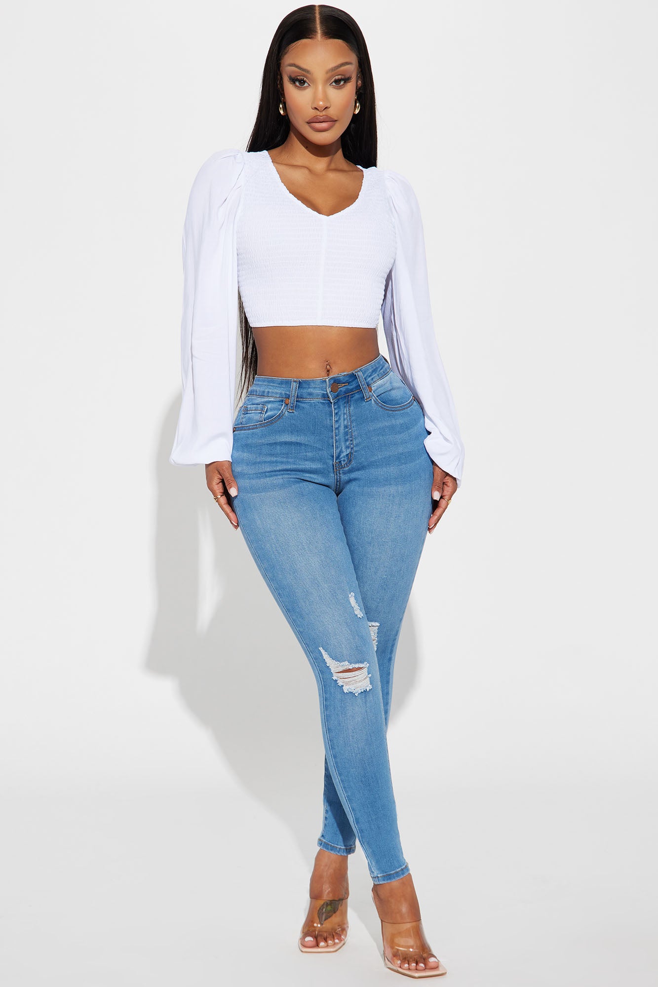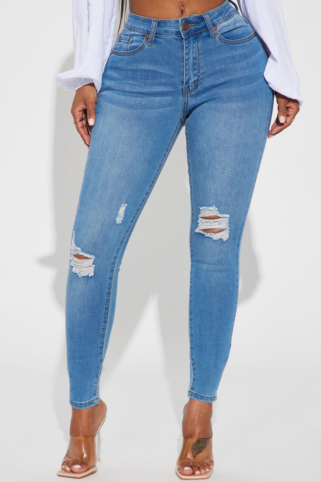 Huntington Super Stretch Distressed Skinny Jeans - Light Wash