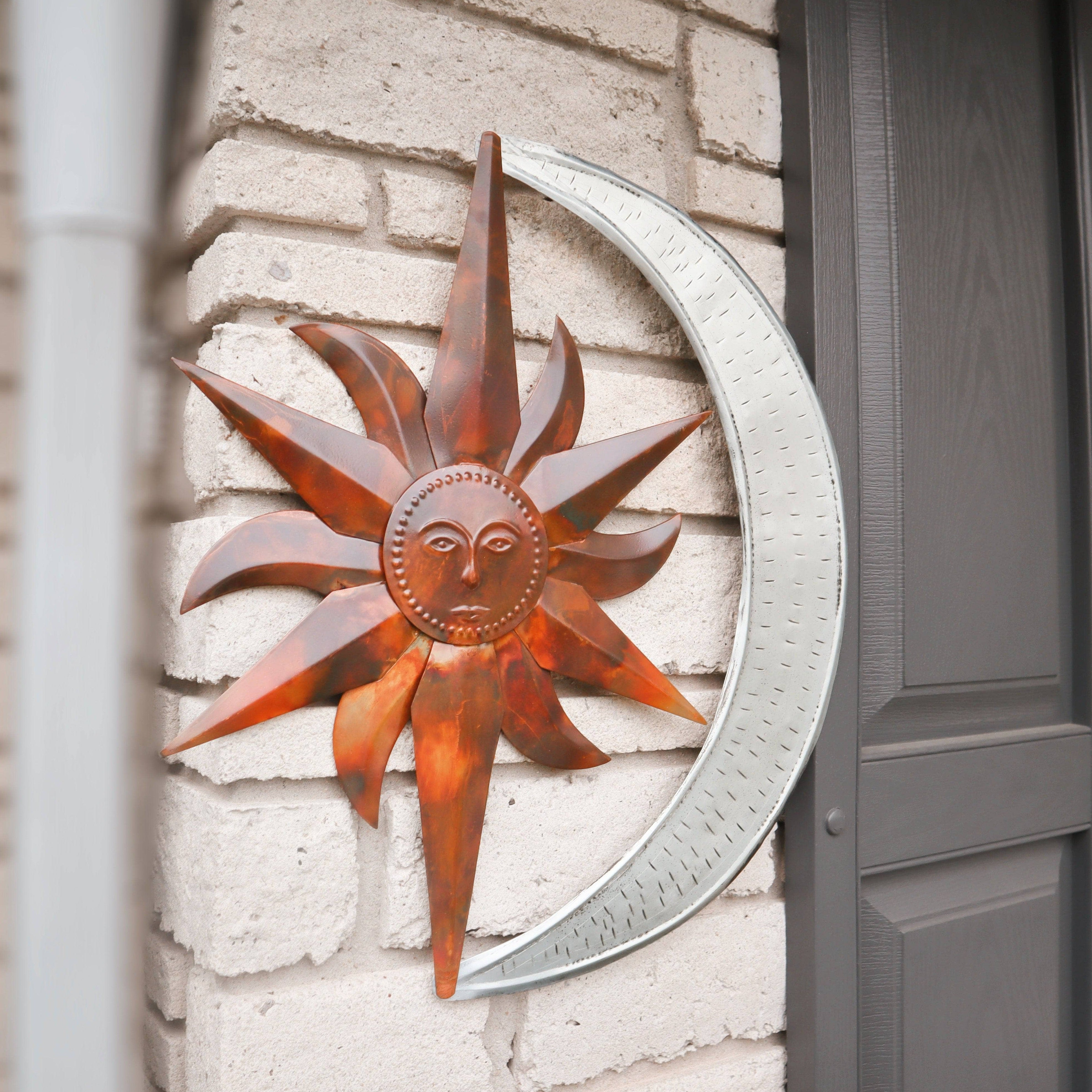 Pay homage to all things celestial with our Flamed Sun and Moon Wall Hanging. Perfect for any wall or fence, this piece is made from steel and features flamed detailing. Neutral, warm and chic, this piece will complement existing decor in your garden or on your patio.