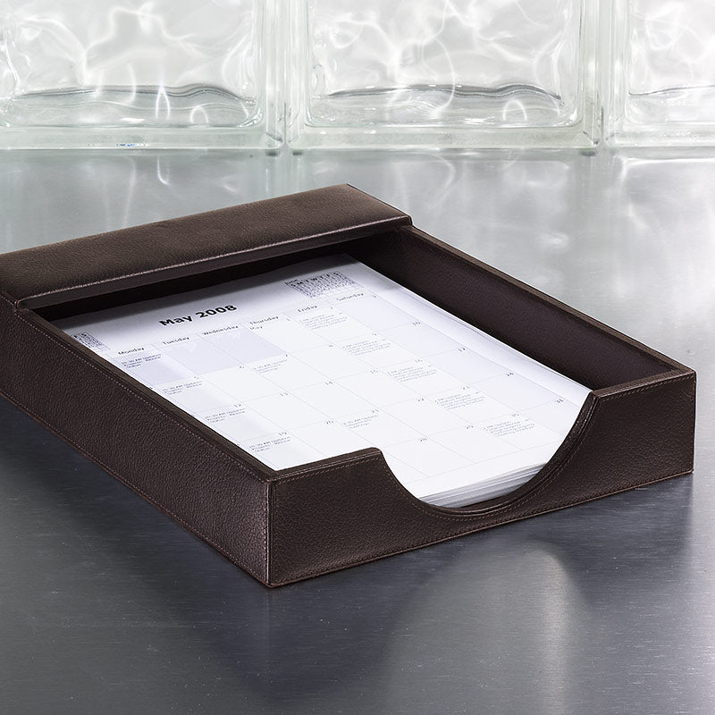 Full-grain pebbled leather desk tray and inbox. Bomber Jacket flight plan: from rugged wear to deskware. Our intrepid Bomber Jacket leather, the same used in the jackets of World War II fighter pilots, makes a durable letter box and inbox.