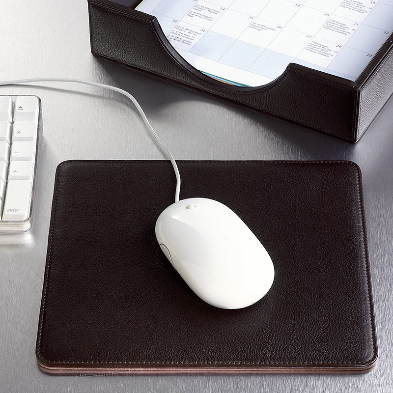 A mouse pad in durable pebbled full-grain leather. Our Bomber Jacket leather mouse pad is as thin as a bookcover and fits in tight work areas. Your mouse rolls smoothly and easily over the soft pebbled leather. Add a monogram for a personal touch.