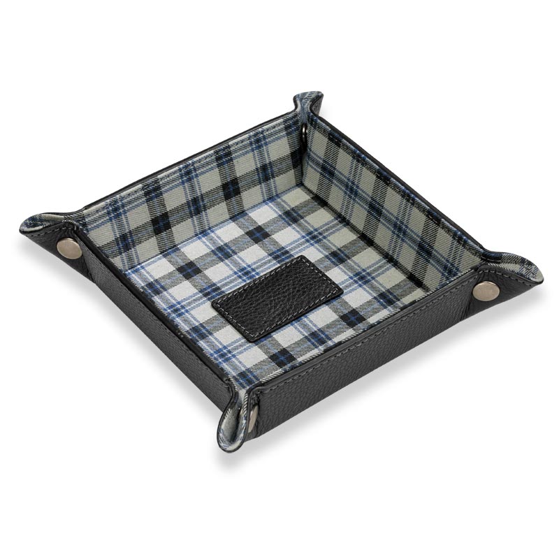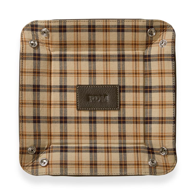 A foldable leather desk tray for travelers. Here’s a valet tray that folds and snaps to keep you organized wherever you go. The Bomber Jacket Snap Tray holds small accessories for your desk or wherever you choose. It lays flat for easy storage or travel when you unfasten the snaps. Add a monogram for a personal touch.