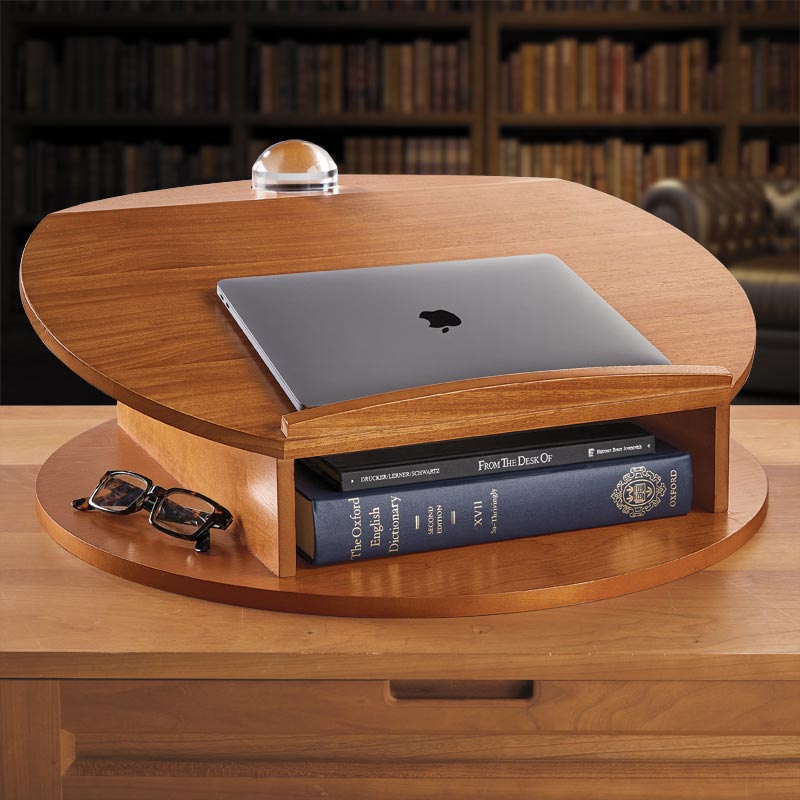 This Product Ships Free. A revolving book stand for your Carousel Bookcase. Here’s the crowning glory for your Carousel Bookcase configuration—a beautiful rotating wood book stand, with a ledge to hold your book at an optimal reading angle, a storage shelf below and an acrylic dome magnifier in its own nook. Start with the , stack two (all available separately), then top with this Book Stand. The Book Stand also works by itself on a desk or table, without the rotating effect. The (available separately) includes the Base, two Book Shelves and the Book Stand—save 25%.