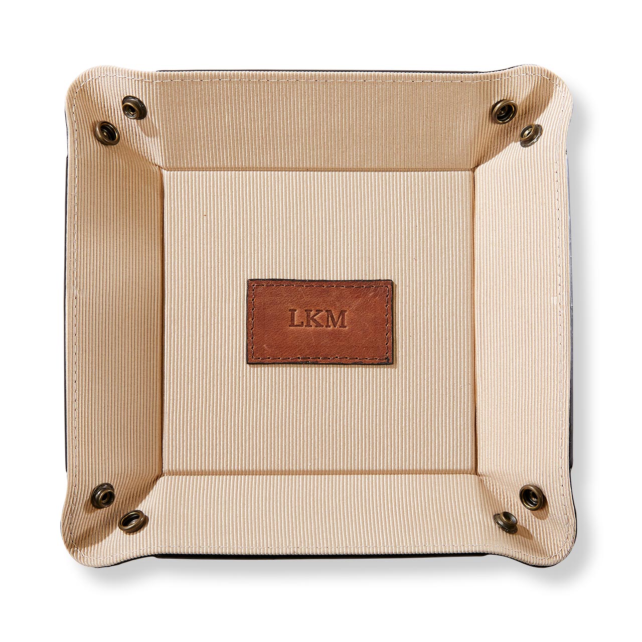 Our Expedition leather valet tray snaps into service to keep you organized wherever you go. Crafted in our hand-stained full-grain buffalo leather in tobacco, this handy catch-all is ideal for wallet, keys, coins, jewelry or pens. Unsnap it and it folds flat for easy portability. Add a monogram for a personal touch.