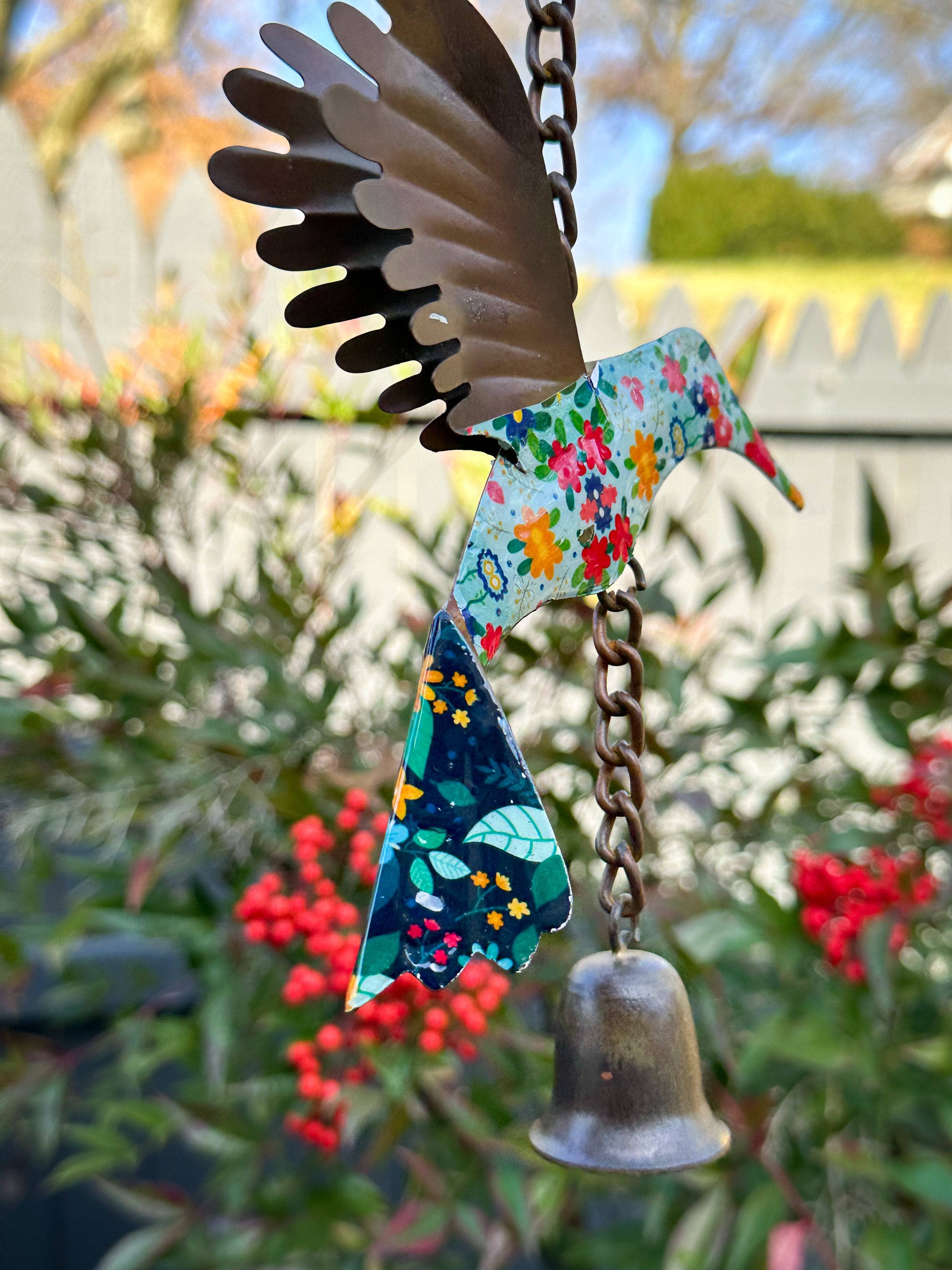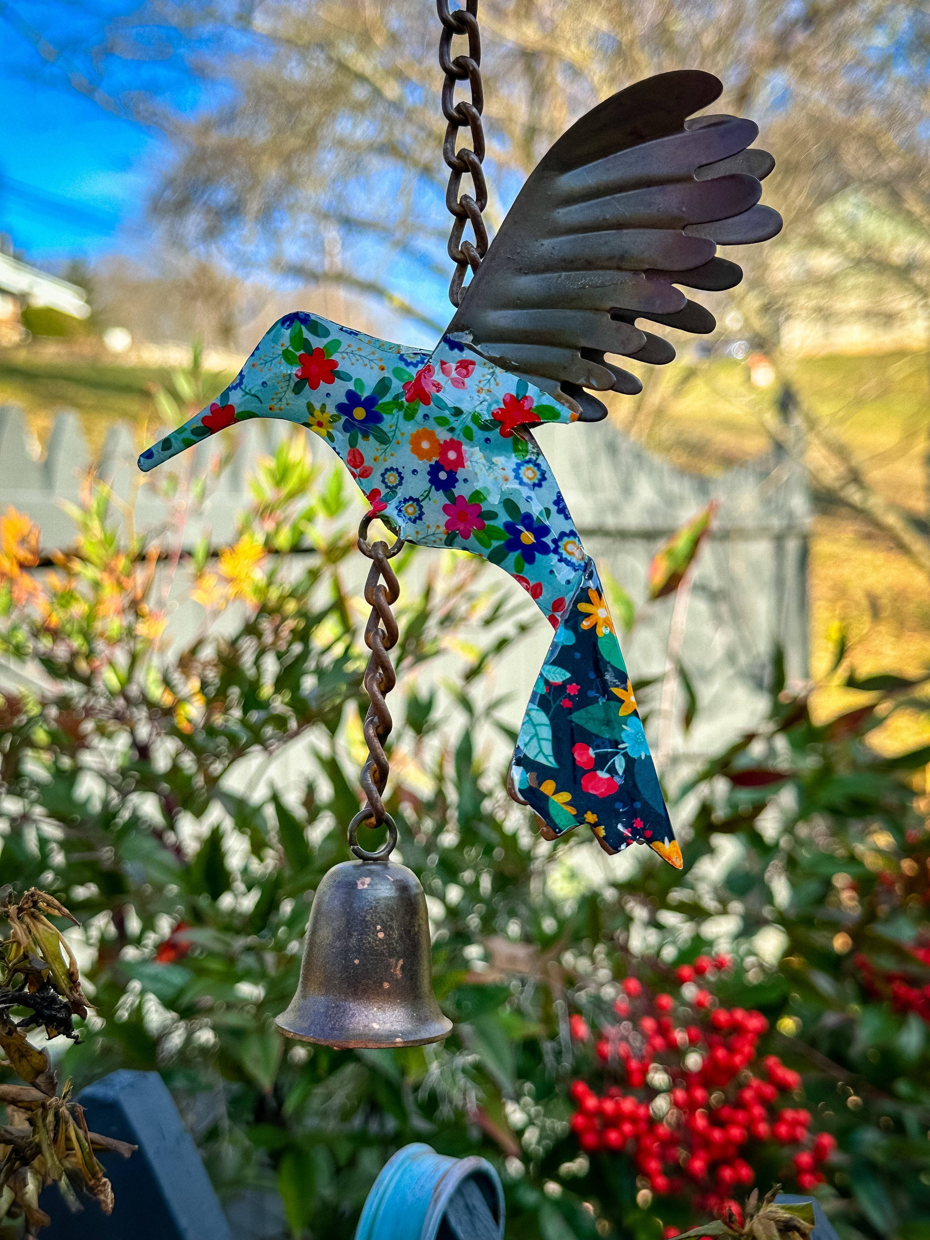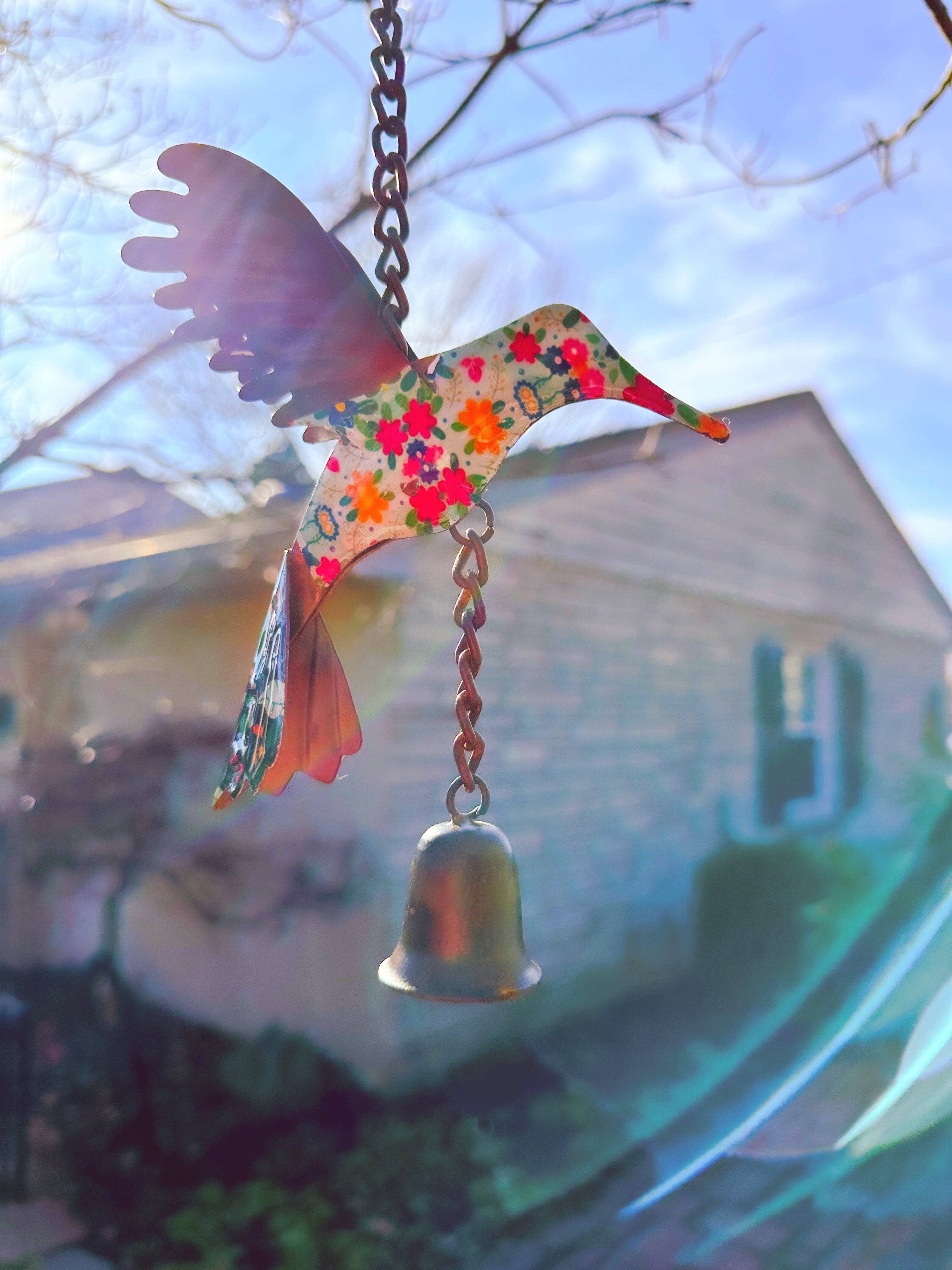 Add a punch of color to any outdoor space with this adorable floral hummingbird.