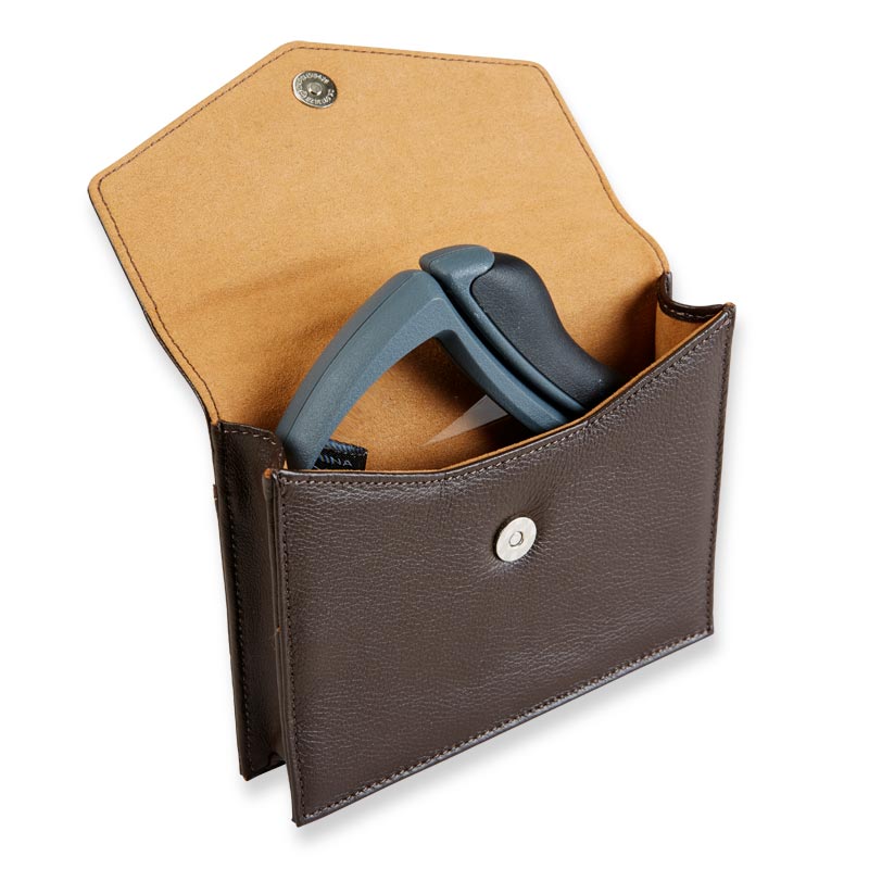 Read small print with ease. This folding magnifier features a rectangular lens, shaped for the way you naturally view things. The collapsible handle locks into any of three different positions for the most comfortable alignment. Fold the handle flush for easy storage. Luxurious leather case protects your magnifier, and microfiber suede lining keeps it scratch-free.
