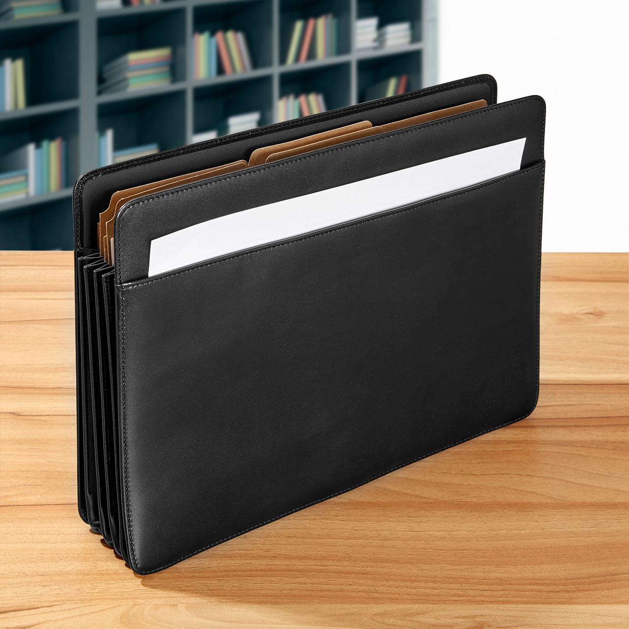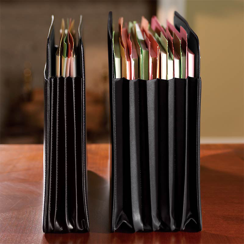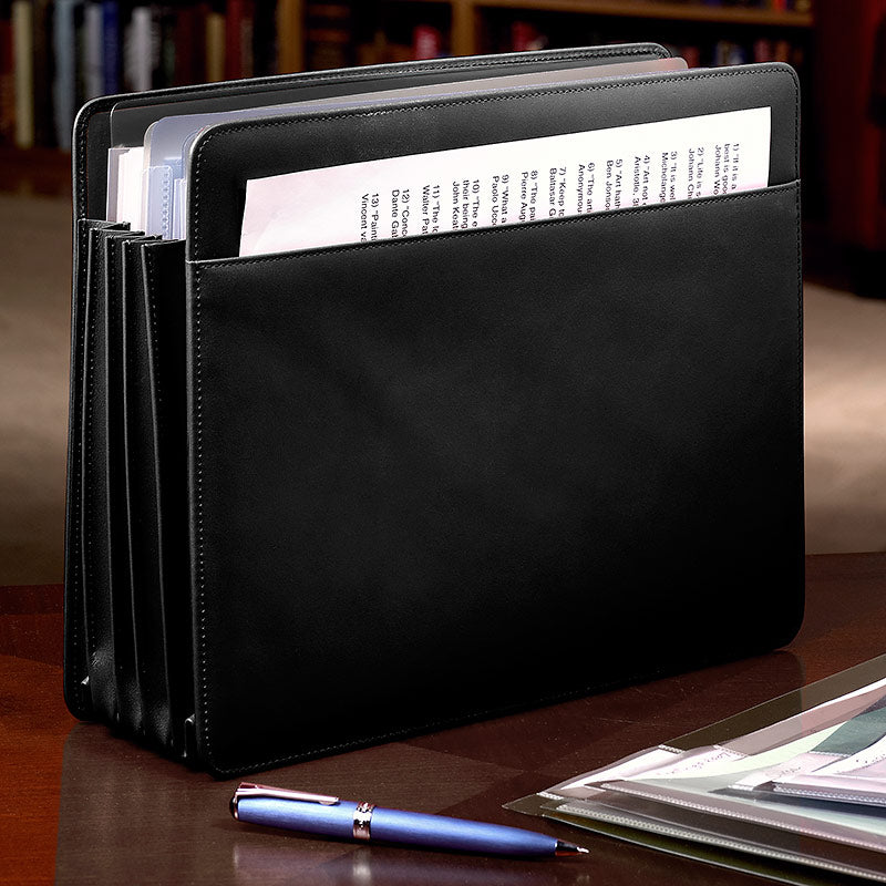 An accordion file in durable full-grain leather. Upgrade your files to leather with this handsome leather accordion file. Unlike the paper version, which wears out, our Leather-Rope® accordion folder will wear beautifully and last for generations.  A Levenger 35th Anniversary Heritage Product.