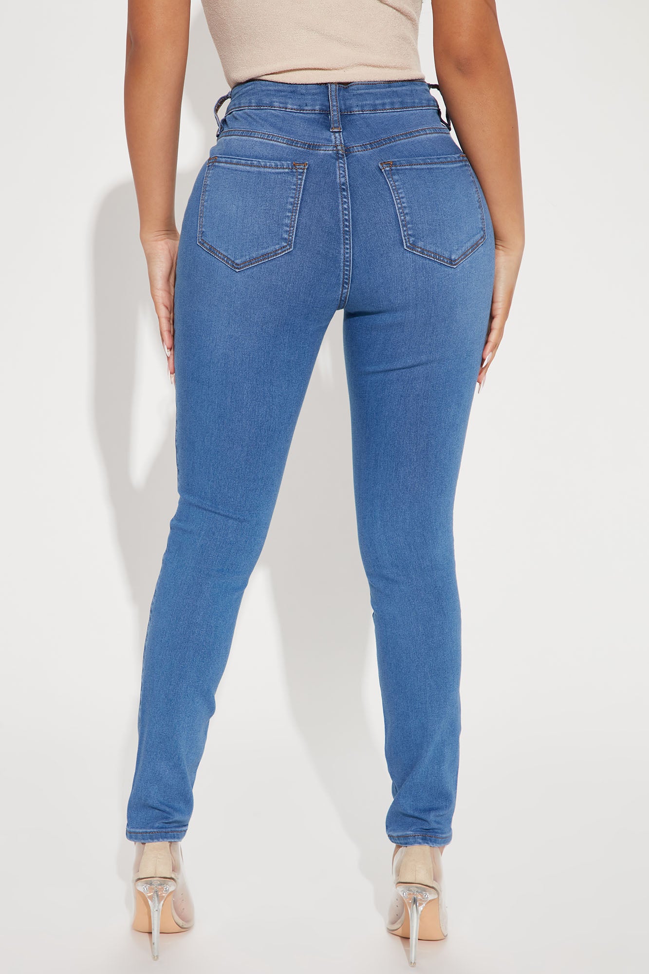 Mid-rise to the occasion! Transition seamlessly from day to night in our Medium Blue Classic Mid-Rise Skinny Jeans. Featuring a four-pocket design and mid-rise, skinny cut, this is a pair of denim you won't know how you ever lived without.