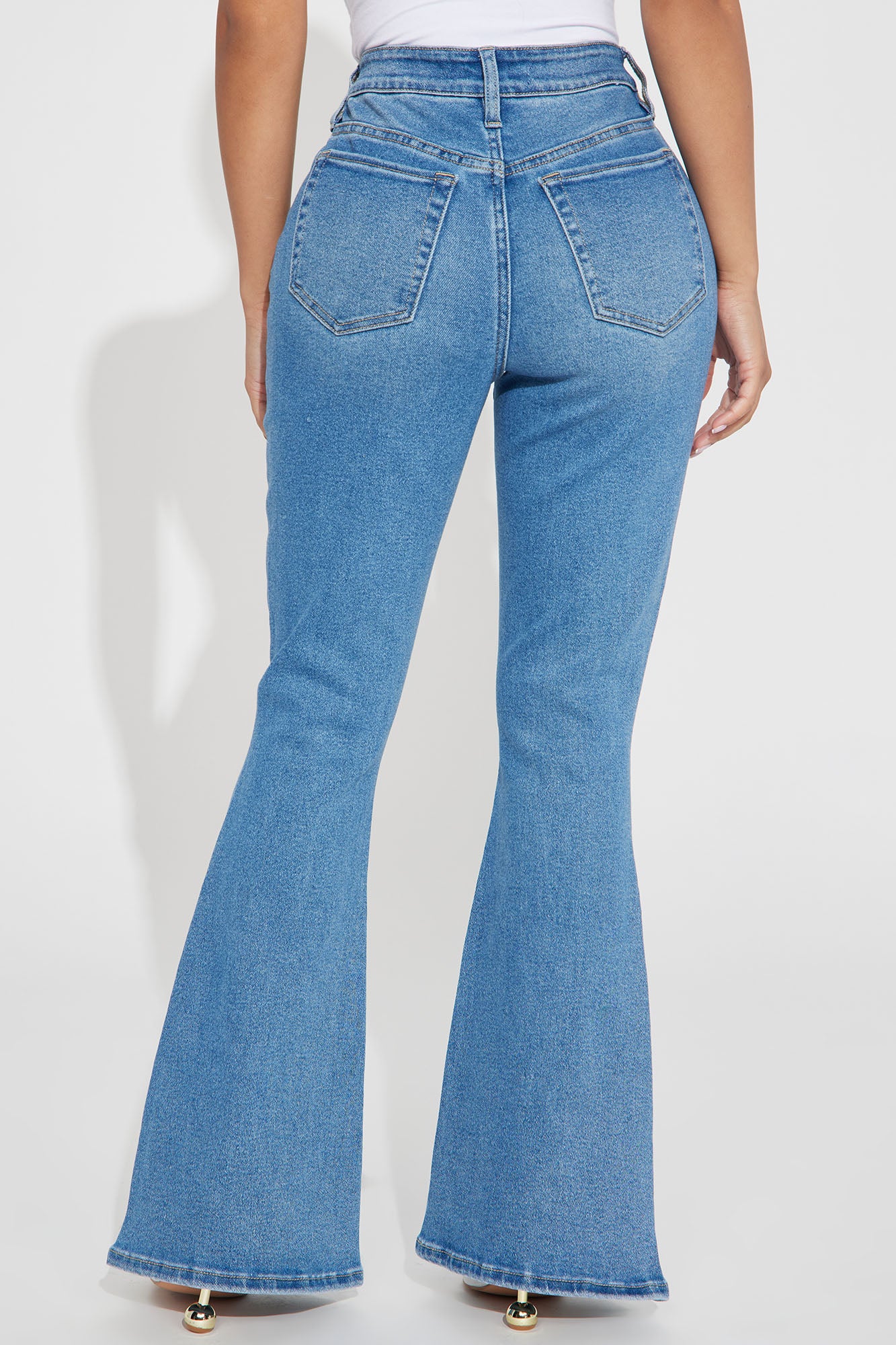 Petite Girl Bye High Rise Flare Jeans - Light Blue Wash