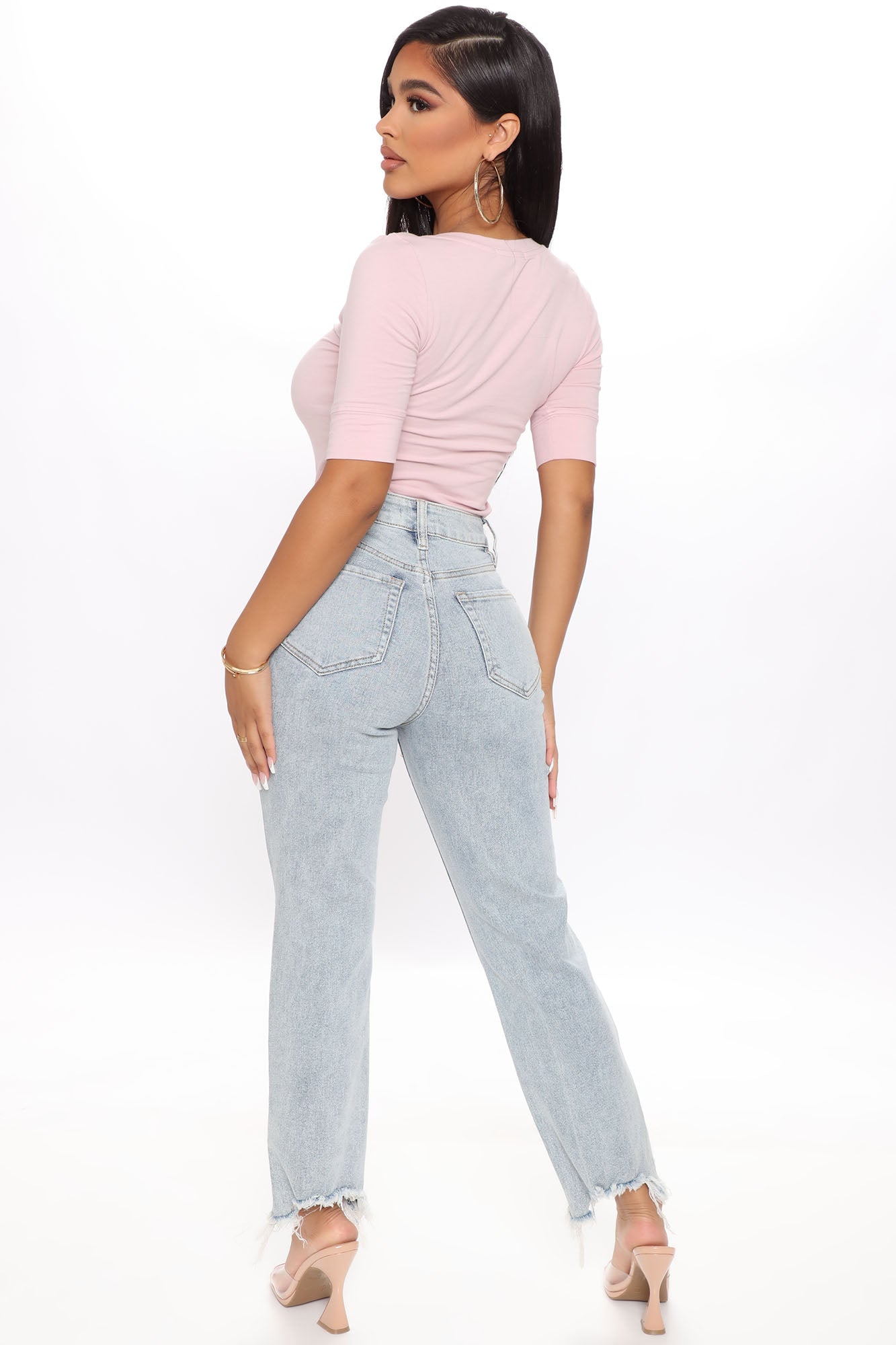 Time Out Crossover Distressed Vintage Ankle Jeans - Light Blue Wash