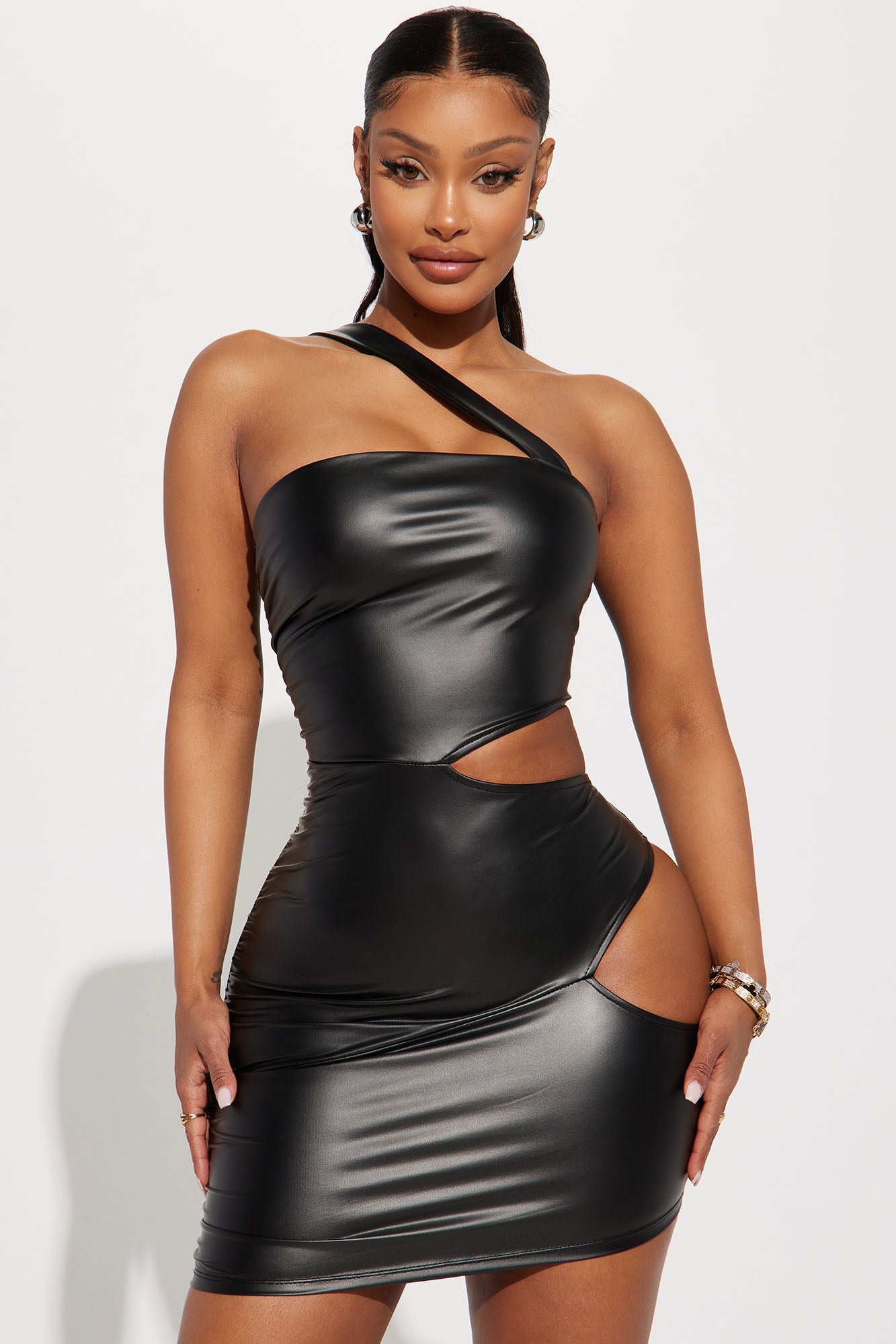 • Faux Leather Mini Dress